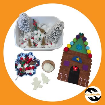 Calling all little chefs! In this class we will be decorating a popsicle stick gingerbread houses with poms poms, felt, glitter glue, and stickers. Then, we will mix and roll out sparkly snow dough and practice making cookies with cookie cutters. We'll also have free play in our winter-themed sensory bins. You'll get to take your gingerbread house and snow dough with you to continue the fun at home! This class is great for ages 4+ and will spark creativity, improve fine motor skills, and introduce little chefs to new sensory experiences!